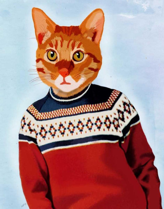 Cat in Ski Sweater Black Ornate Wood Framed Art Print with Double Matting by Fab Funky