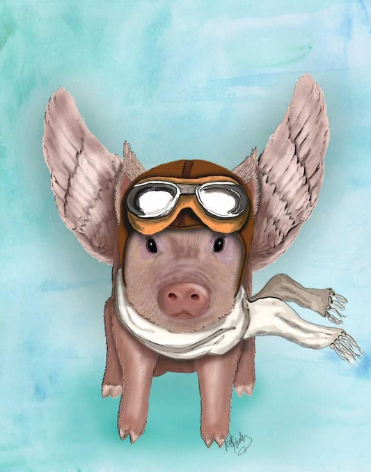 Aviator Piggy Black Ornate Wood Framed Art Print with Double Matting by Fab Funky
