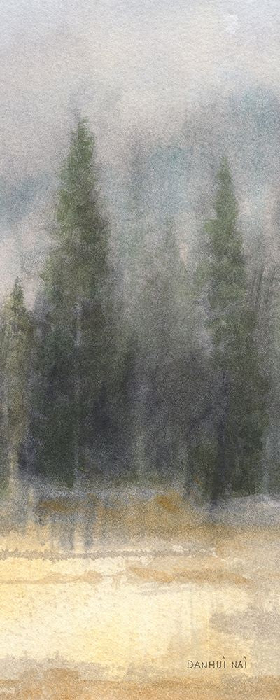 Misty Pines Panel I Black Ornate Wood Framed Art Print with Double Matting by Nai, Danhui