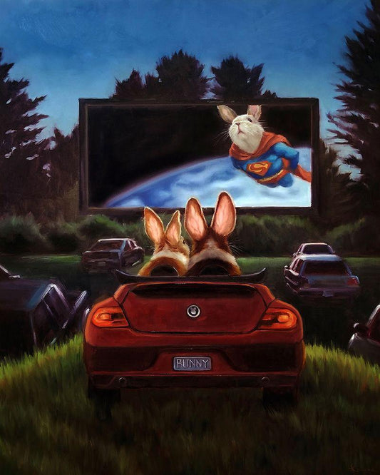 Movie Night Black Ornate Wood Framed Art Print with Double Matting by Heffernan, Lucia