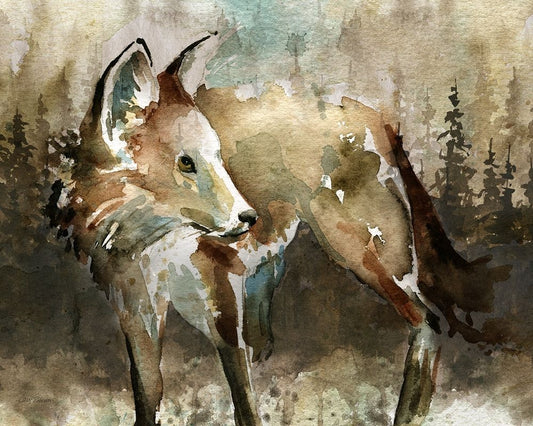 Forest Wolf Black Ornate Wood Framed Art Print with Double Matting by Robinson, Carol