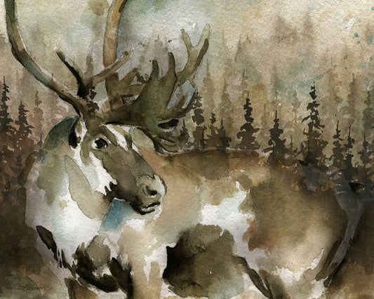 Forest Deer Black Ornate Wood Framed Art Print with Double Matting by Robinson, Carol