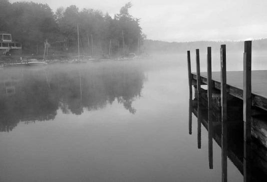 On The Dock BW Black Ornate Wood Framed Art Print with Double Matting by Grey, Jace