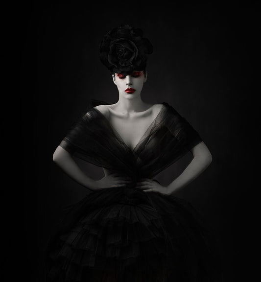 The Black Rose.... White Modern Wood Framed Art Print with Double Matting by Sanchez, Alfredo