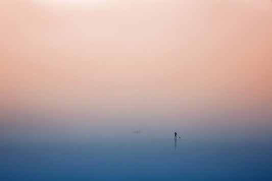Stand Up Paddling White Modern Wood Framed Art Print with Double Matting by Hermann, Uschi