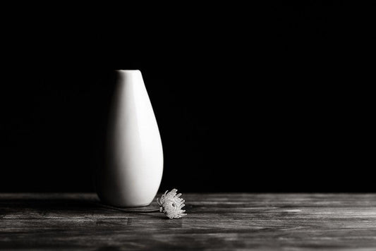Flower And Vase White Modern Wood Framed Art Print with Double Matting by Ljubicic, Dusan