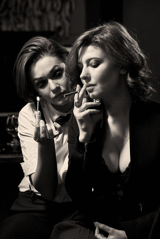 At The Bar White Modern Wood Framed Art Print with Double Matting by Smirnov, Sergei