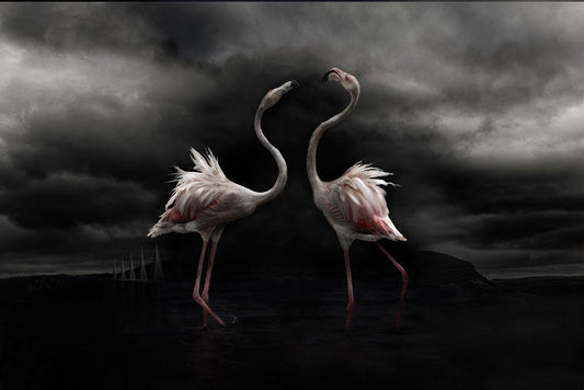The Black Stork White Modern Wood Framed Art Print with Double Matting by Fegari