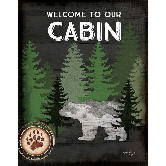 Welcome to Our Cabin Black Modern Wood Framed Art Print with Double Matting by Pugh, Jennifer