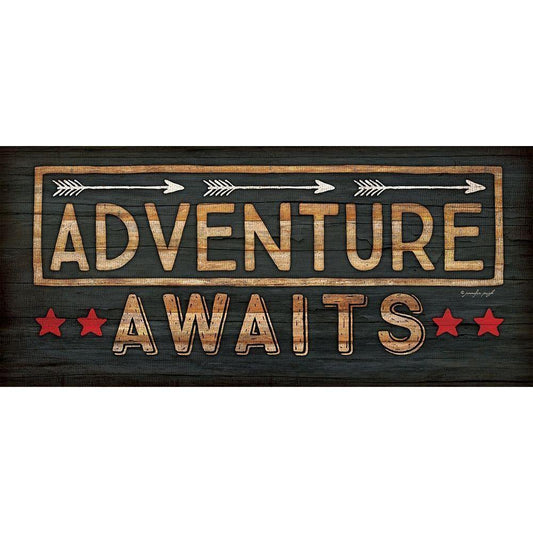 Adventure Awaits Black Modern Wood Framed Art Print with Double Matting by Pugh, Jennifer