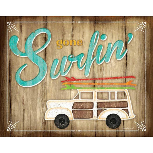 Gone Surfin Black Modern Wood Framed Art Print with Double Matting by Pugh, Jennifer
