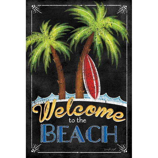 Welcome to the Beach Black Modern Wood Framed Art Print with Double Matting by Pugh, Jennifer