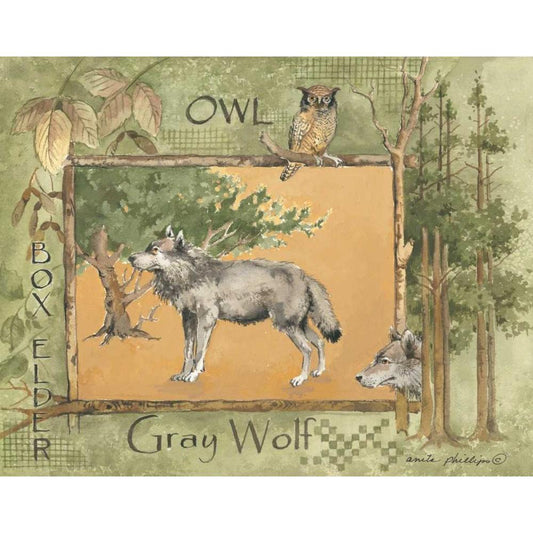 Gray Wolf Black Modern Wood Framed Art Print with Double Matting by Phillips, Anita