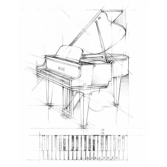 Piano Sketch Black Modern Wood Framed Art Print with Double Matting by Harper, Ethan