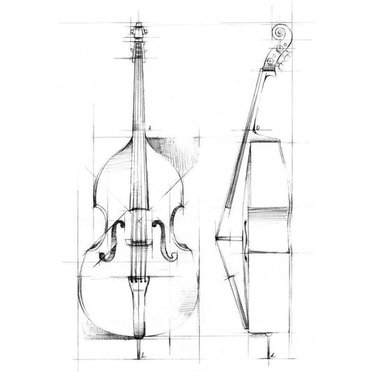 Cello Sketch Black Modern Wood Framed Art Print with Double Matting by Harper, Ethan
