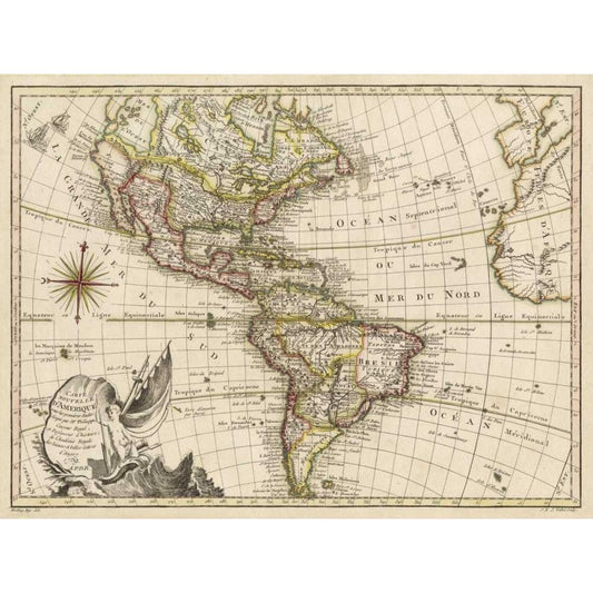A New Map of America - 1769 Black Modern Wood Framed Art Print with Double Matting by Vallet