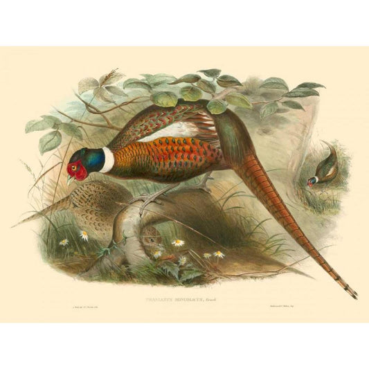 Gould Pheasants I Black Modern Wood Framed Art Print with Double Matting by Gould, John