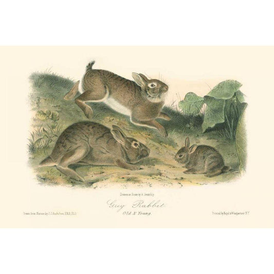 Grey Rabbit Black Modern Wood Framed Art Print with Double Matting by Audubon, John James