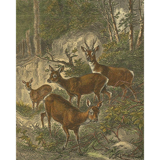 Small Roe Deer Black Modern Wood Framed Art Print with Double Matting by Specht, Friedrich
