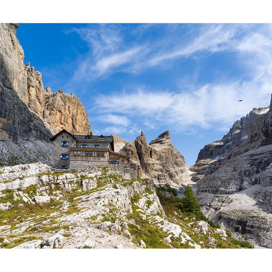 Mountain hut Rifugio Tuckett e Sella-The Brenta Dolomites-UNESCO World Heritage Site-Italy-Trentino Gold Ornate Wood Framed Art Print with Double Matting by Zwick, Martin