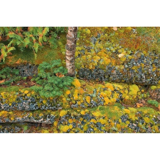 Canada-Ontario-Bruce Peninsula National Park Birch tree and moss on limestone rock Gold Ornate Wood Framed Art Print with Double Matting by Jaynes Gallery
