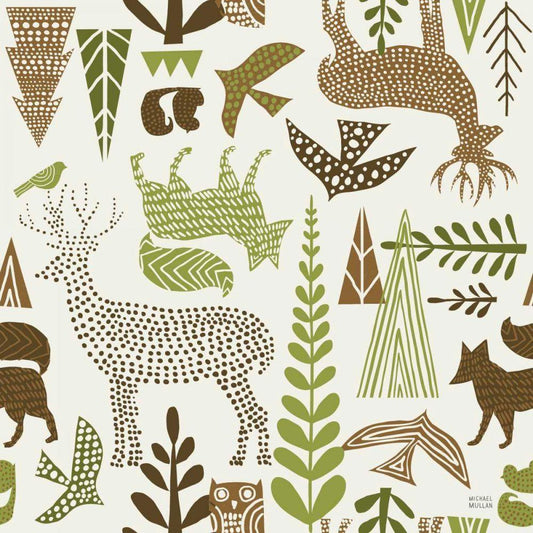 Forest Folklore Green Pattern IB Gold Ornate Wood Framed Art Print with Double Matting by Mullan, Michael