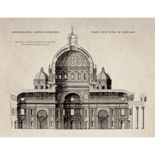 San Pietro by Michelangelo, Sepia White Modern Wood Framed Art Print by Michelangelo