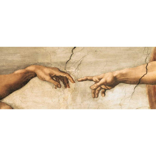 The Creation of Adam Detail White Modern Wood Framed Art Print by Michelangelo