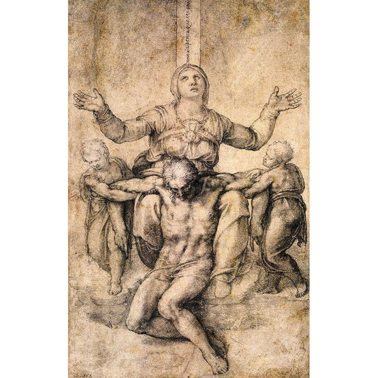 Pieta-4 Black Modern Wood Framed Art Print by Michelangelo