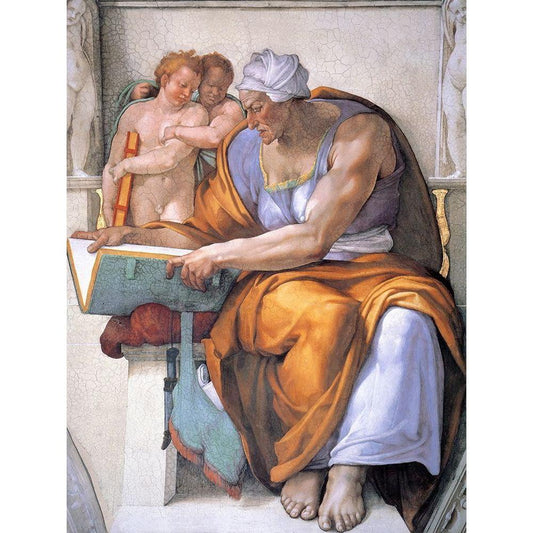 The Erythraean Sibyl Black Modern Wood Framed Art Print by Michelangelo