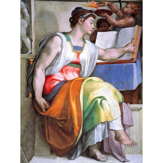 The Delphic Sibyl Black Modern Wood Framed Art Print by Michelangelo