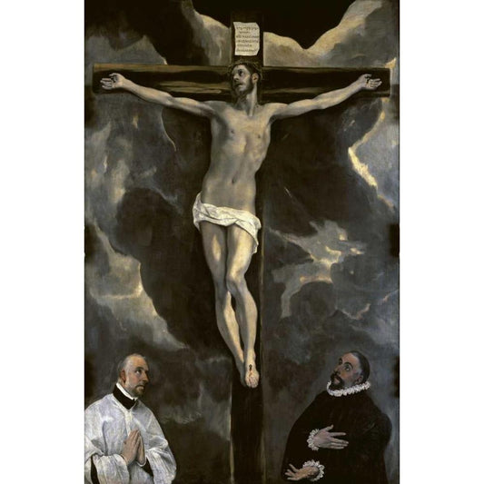 Christ on the Cross Adored by Two Donors Black Modern Wood Framed Art Print by El Greco