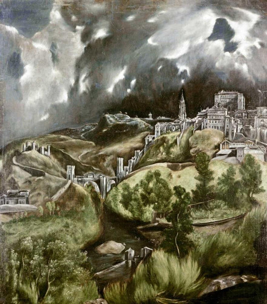 View of Toledo White Modern Wood Framed Art Print with Double Matting by El Greco