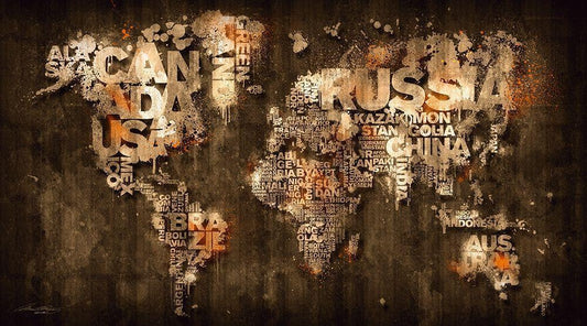 World of Life-Seachart White Modern Wood Framed Art Print with Double Matting by Mikael D. Design