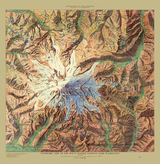Mount Rainier Forest Washington 1899 White Modern Wood Framed Art Print with Double Matting by Bien