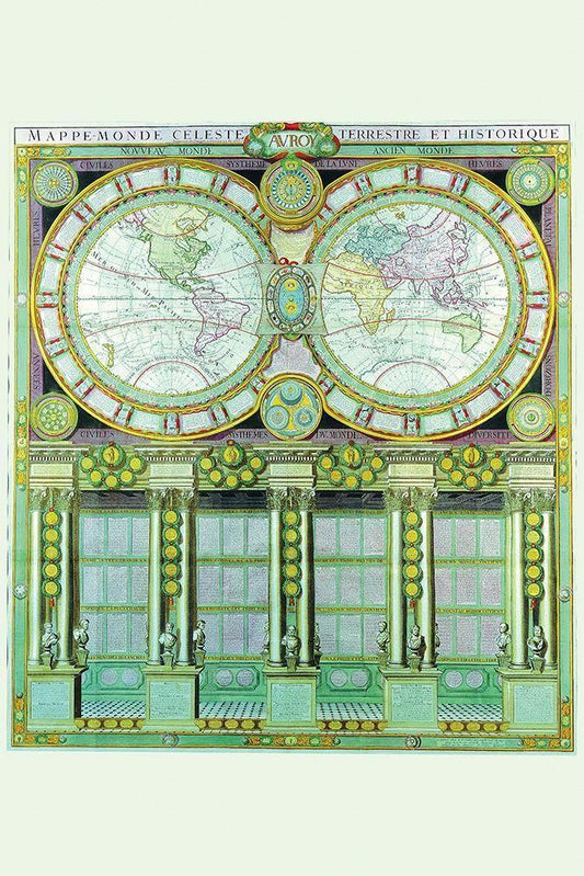 Mappe Monde Celeste Terrestre et Historique Stereographic Projection White Modern Wood Framed Art Print with Double Matting by Desnos, Louis Charles