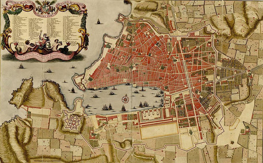 Belgium, Newport Chart of Military armaments in Defense 1700 White Modern Wood Framed Art Print with Double Matting by Beeck, Anna