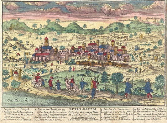 Bethlehem City of David White Modern Wood Framed Art Print with Double Matting by Chereau, Jacque le jeune