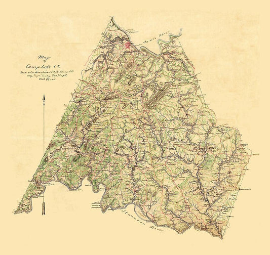 Campbell County Virginia - Campbell 1860 White Modern Wood Framed Art Print with Double Matting by Campbell