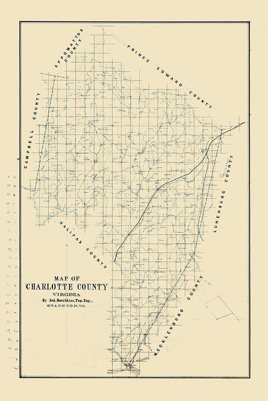 Charlotte County Virginia - Hotchkiss 1860 White Modern Wood Framed Art Print with Double Matting by Hotchkiss