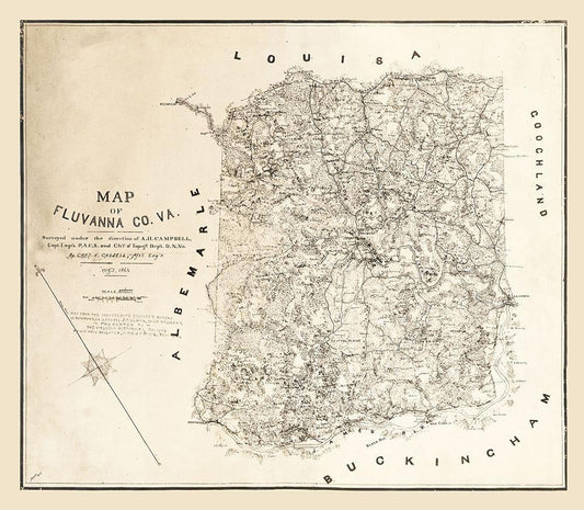 Charlotte County Virginia - Campbell 1864 White Modern Wood Framed Art Print with Double Matting by Campbell