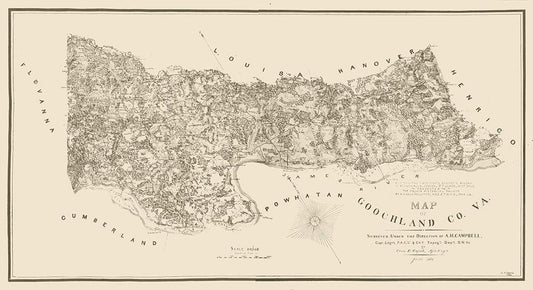 Goochland County Virginia - Cafsell 1863 White Modern Wood Framed Art Print with Double Matting by Cafsell