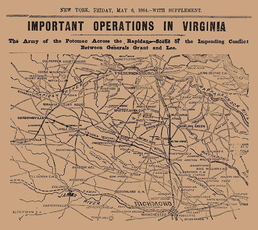 Important Operations Virginia - 1864 White Modern Wood Framed Art Print with Double Matting by Unknown