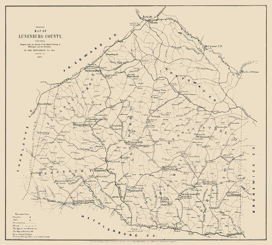 Lunenburg County Virginia - Hotchkiss 1871 White Modern Wood Framed Art Print with Double Matting by Hotchkiss