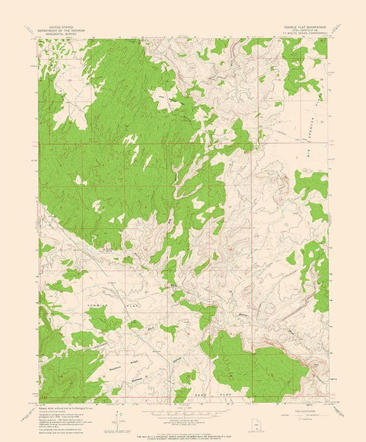Tenmile Flat Utah Quad - USGS 1964 White Modern Wood Framed Art Print with Double Matting by USGS