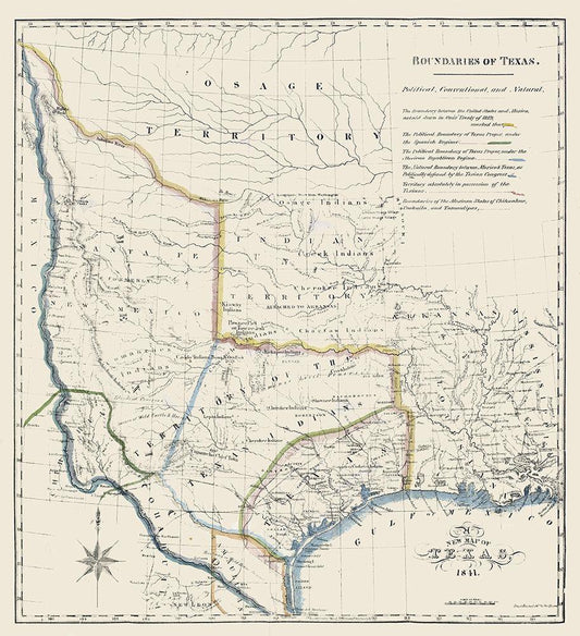 Texas Boundaries -1841 White Modern Wood Framed Art Print with Double Matting by Unknown