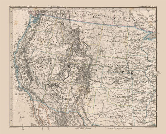 Western United States - Stieler 1885 White Modern Wood Framed Art Print with Double Matting by Stieler