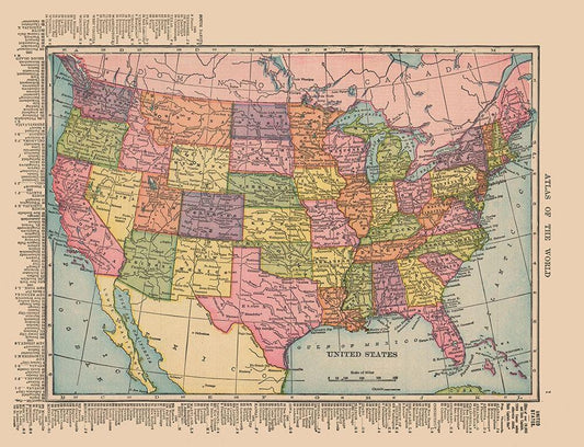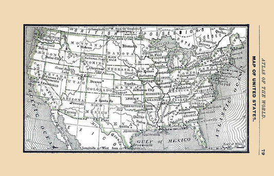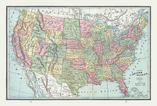 United States - Cram 1888 White Modern Wood Framed Art Print with Double Matting by Cram