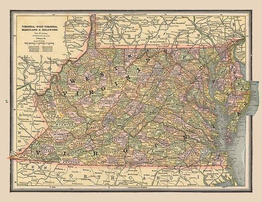 Virginia, West Virginia - Cram 1888 White Modern Wood Framed Art Print with Double Matting by Cram