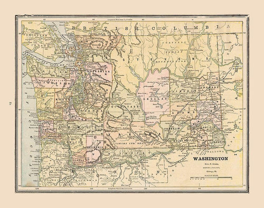 Washington, United States - Cram 1888 White Modern Wood Framed Art Print with Double Matting by Cram